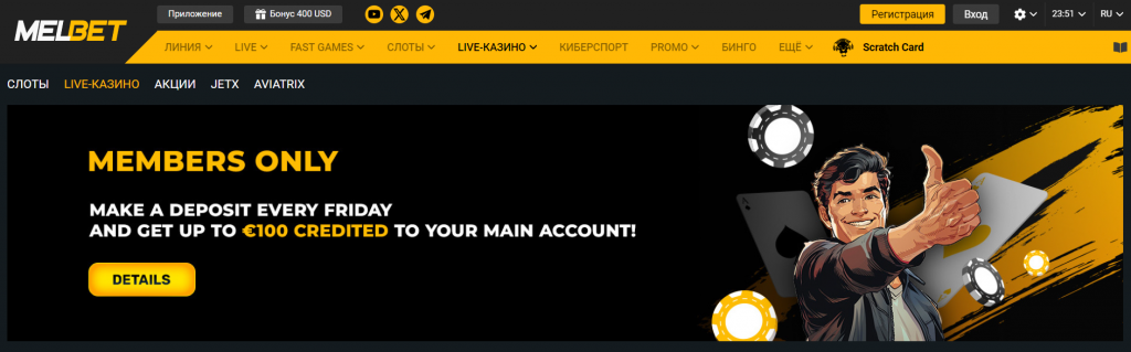 Зарегистрировавшись на сайте и получив доступ к личному кабинету Melbet, пользователи могут наслаждаться высокими коэффициентами, привлекательными бонусными программами и возможностью делать ставки в любое время суток.